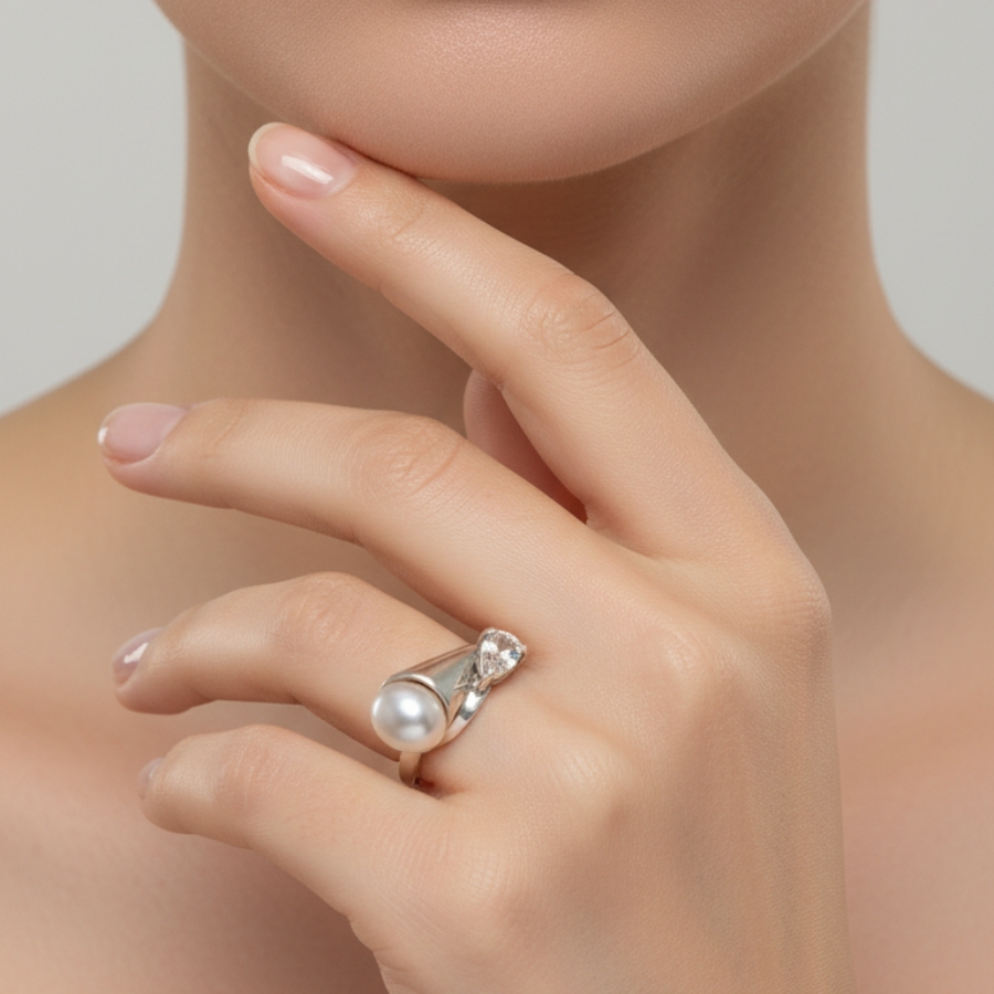 Designed and handcrafted by Hedieh Ahmari, Luna Mare celebrates the eternal dialogue between sea and sky. The pearl symbolizes purity and intuition, while the gemstone adds a touch of warmth and grace — together, they form a wearable reflection of balance and serenity.